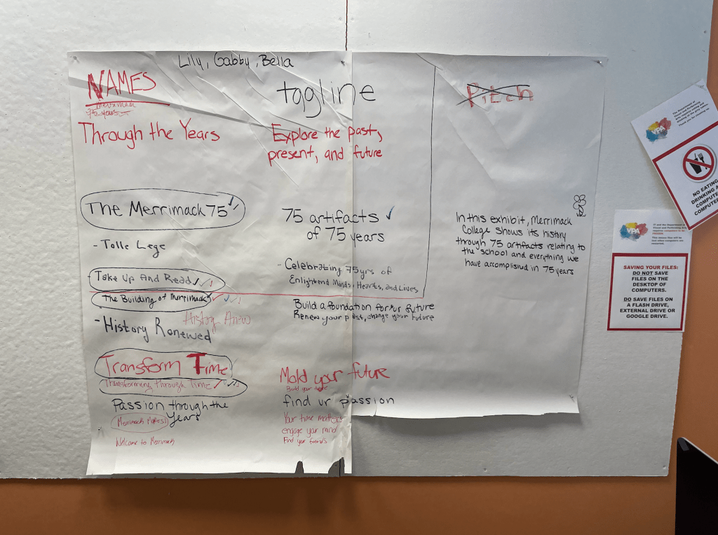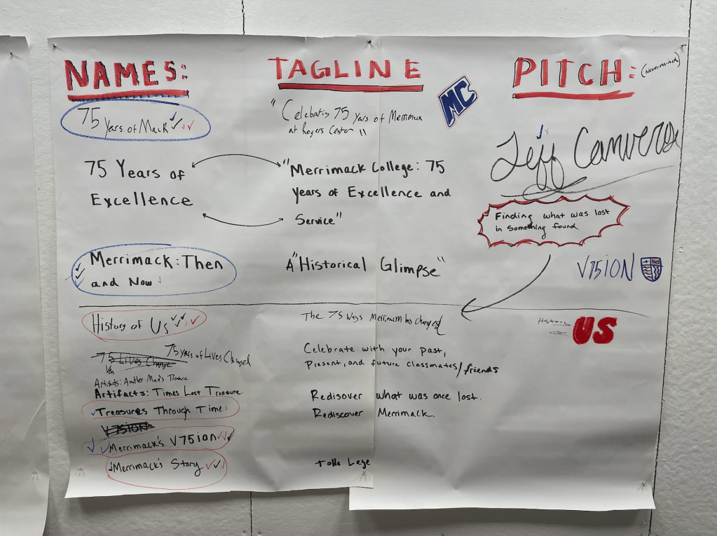 As a class, we have officially begun the design process for Merrimack’s 75th Anniversary Exhibition. We have created our branding boards, and have had thorough conversations regarding the exhibition, and the other details that come along with planning and curating a public exhibition.