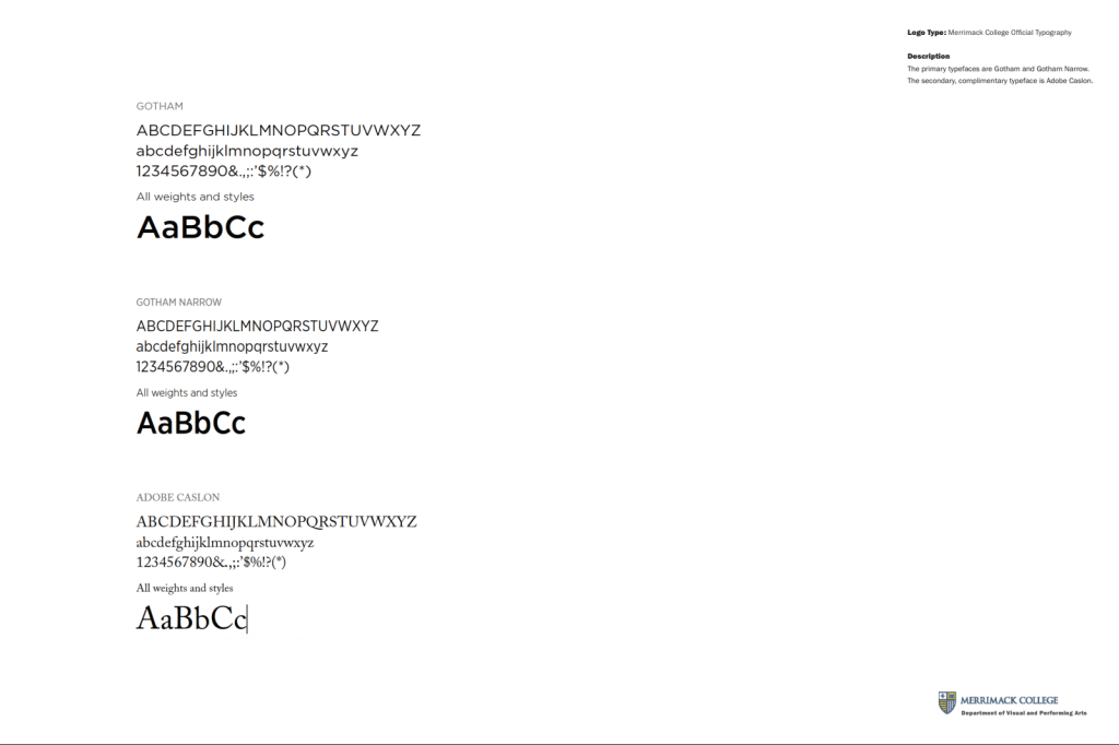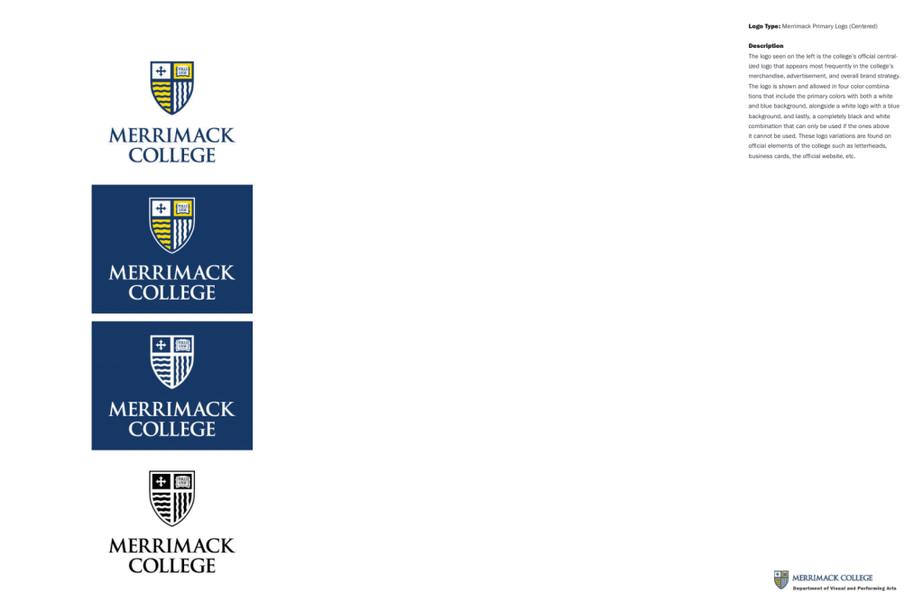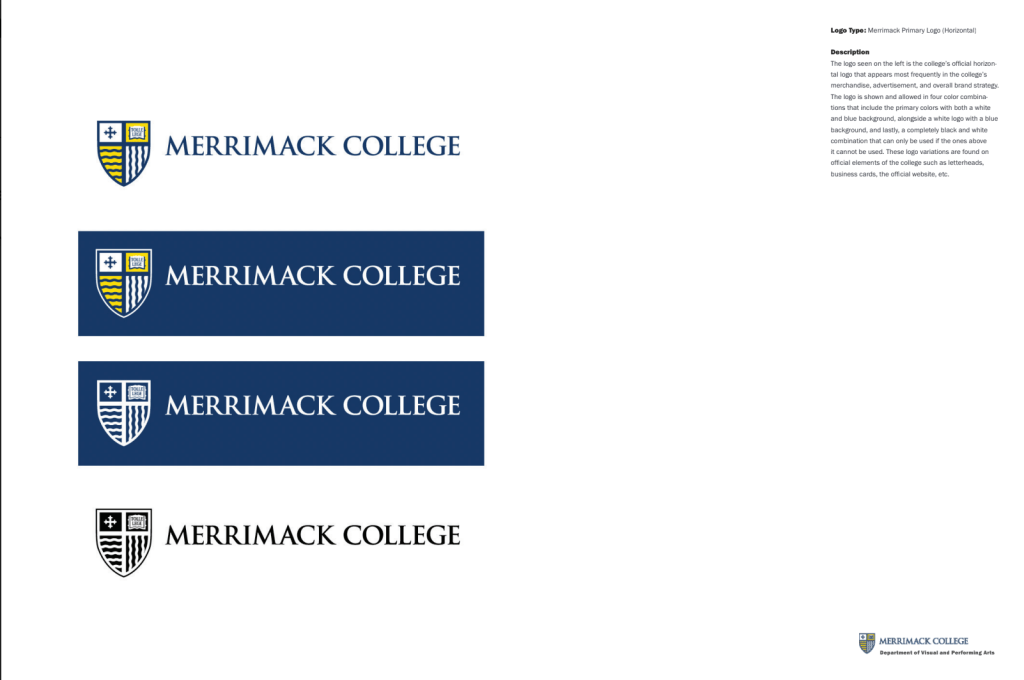 Due to this exercise and assignment, our class and I have a comprehensive understanding of the identity and the restrictions that the Merrimack brand has. These are necessary to understand and refer to when creating professional design work for the school.
