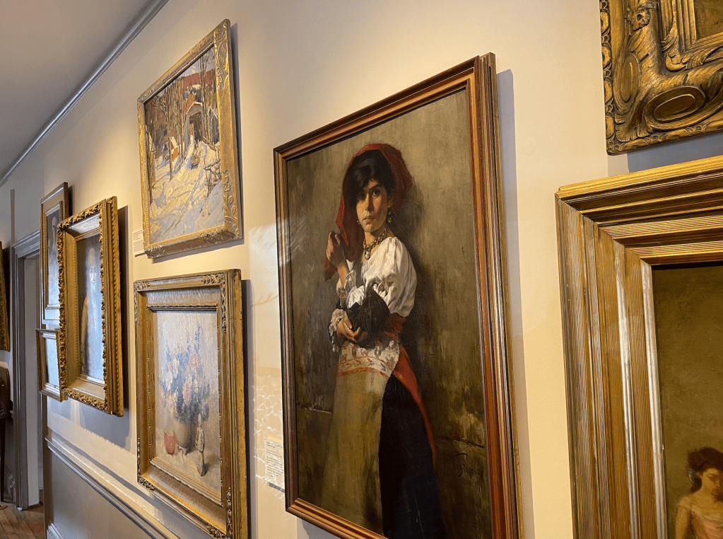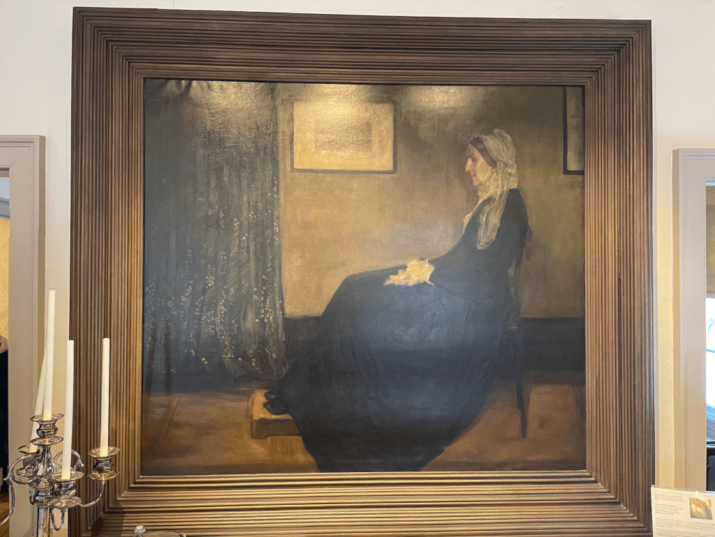 Our first destination was Lowell’s Whistler House Museum of Art, which is known to be the birthplace of James McNeil Whistler, an American painter, famously known for painting the Portrait of the Painter’s Mother (Pictured Above). Alongside this famous painting, the Whistler Museum was a great representation of how we could design our exhibition. This opinion is due to the fact that those working at the Whistler House successfully implemented both physical artifacts in the space, while simultaneously utilizing wall space for paintings, wall graphics, and label cards. The McCoy Art Gallery, while obviously smaller than the Whistler House, will hopefully use both the physical space and the wall to display artifacts and information.