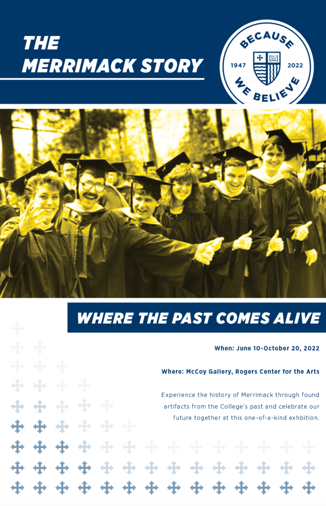 Starting the process has made the objective more tangible and clear. Prior to completing design work, I was thoroughly creating an atmosphere of generated ideas from my research. Now that we have completed one round of design work, and some of the elements of the exhibition are becoming clearer, the goals seem tangible. I have since become eager to strengthen and transform my ideas into a comprehensive element of Merrimack’s 75th Anniversary Exhibition.