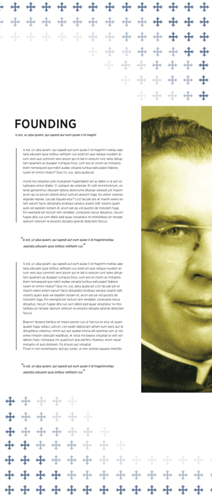 In addition to the individual artifact labels, we were tasked to develop category signs that were seven feet tall. These signs would be informational but also directional for those who visit the gallery. The signs contain long body copies that describe each of the sections including quotes and a detailed summary of the section. While giving broad and additional information, the signs would act as a directional asset for the viewer to know which section they are in. Imagery and bold text would aid them in this understanding. When designing these banners I wanted to keep my design language the same. Using the same duo-tone imagery, patterns, and typefaces, the large McCoy gallery banners fit appropriately into my set.